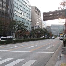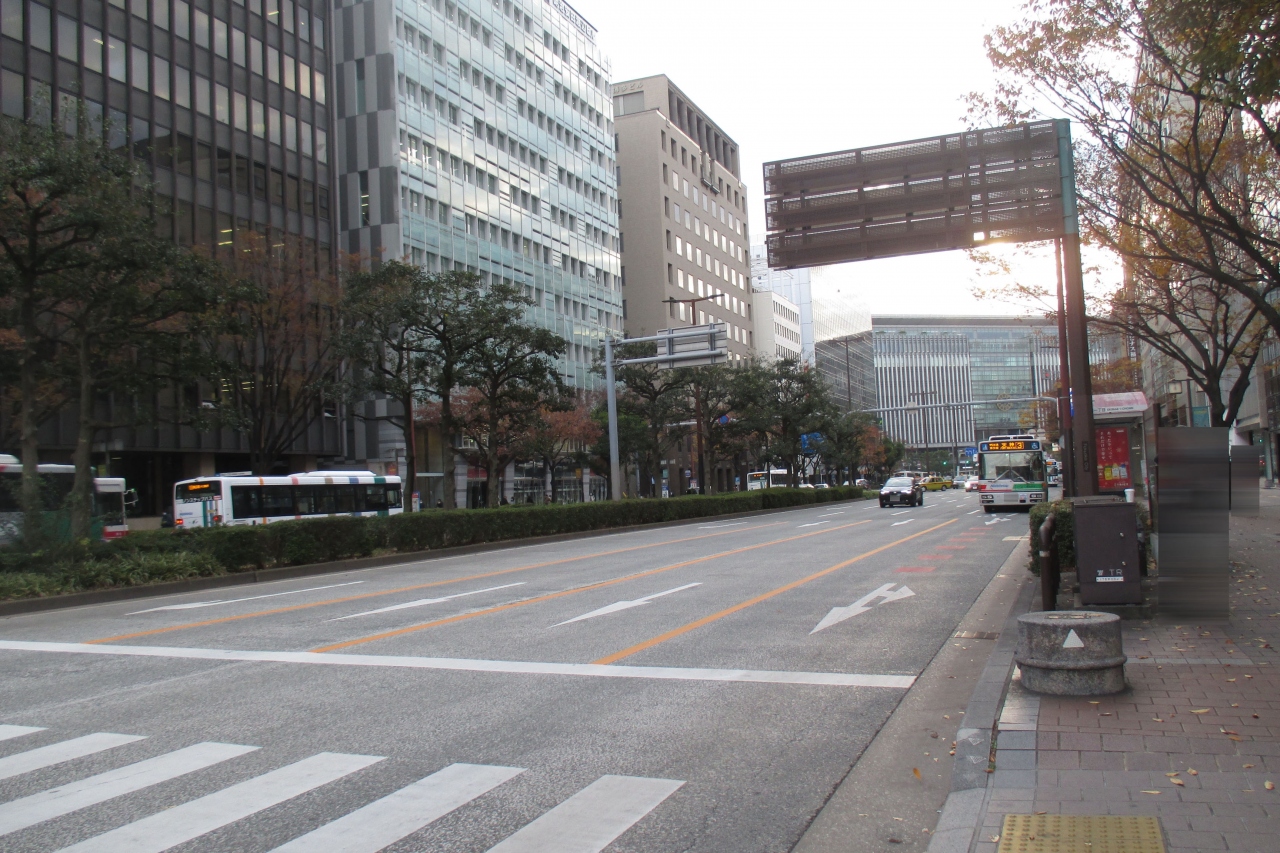 宿泊している博多駅前二丁目のホテルから、承天寺へ向かうときに渡った広い通りが大博通りでした。広いと感じるのも当たり前で、片側4車線もある広い通りでした。(福岡市内では1番広い通りだということです)地下鉄空港線がこの地下を走っています。祇園駅の先で左に逸れていきますが・・・。