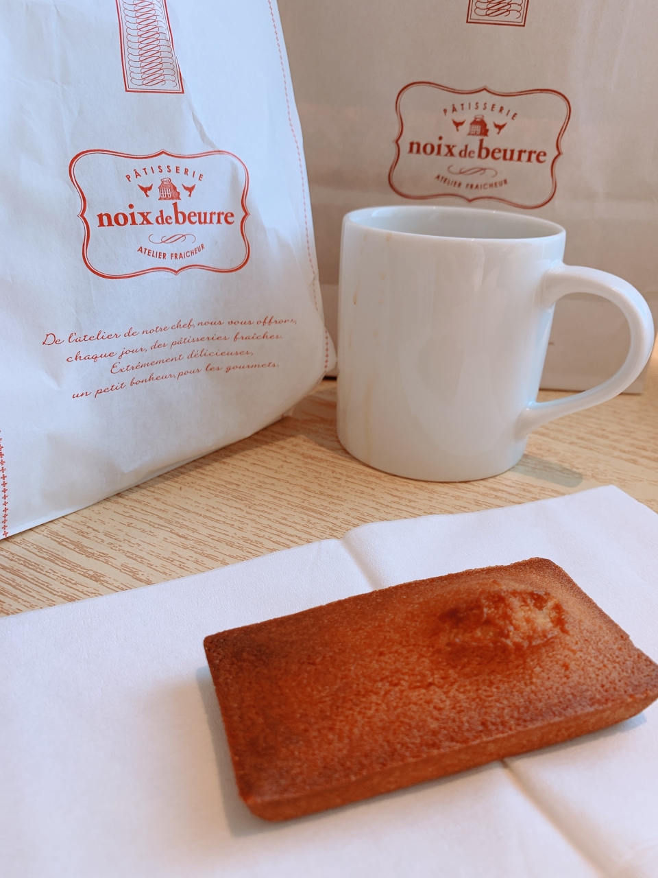 めちゃくちゃ大好きなフィナンシェです。焼き立てってこんなにおいしいんですよね。外はかりかりでなかはふわふわです。めちゃくちゃおいしい!世界いちおいしいです。この日は並んで買いました。かみの袋に入れてもらい朝の楽しみです