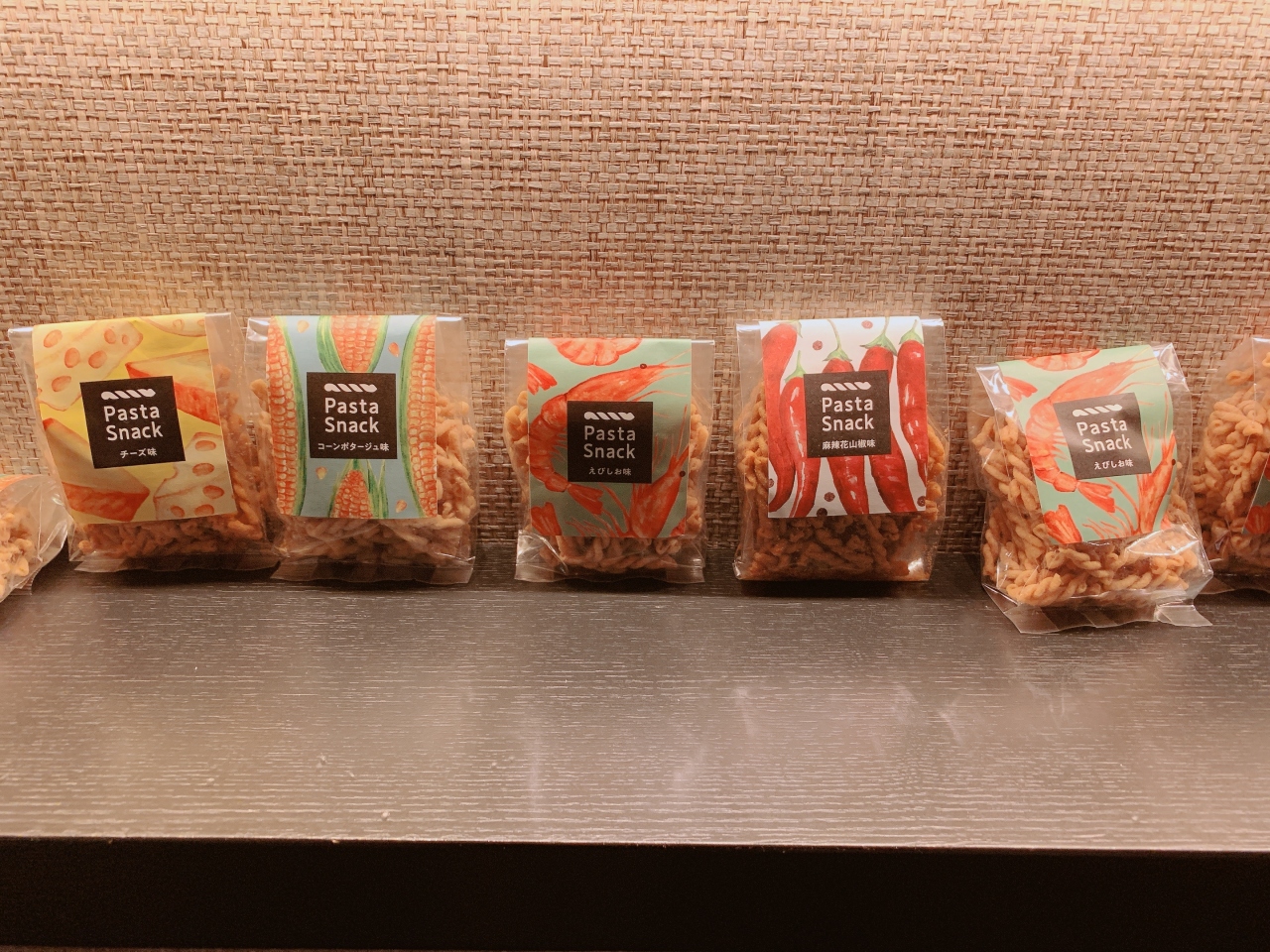 パスタスナックが好きすぎてお店にいくことにしました。全種のパスタスナックがならんでいて狂喜乱舞です。お気に入りを2種ずつ買ってみました。とにかくおいしいんですよね。なんで大阪にないんだろう。あればいいのにな、