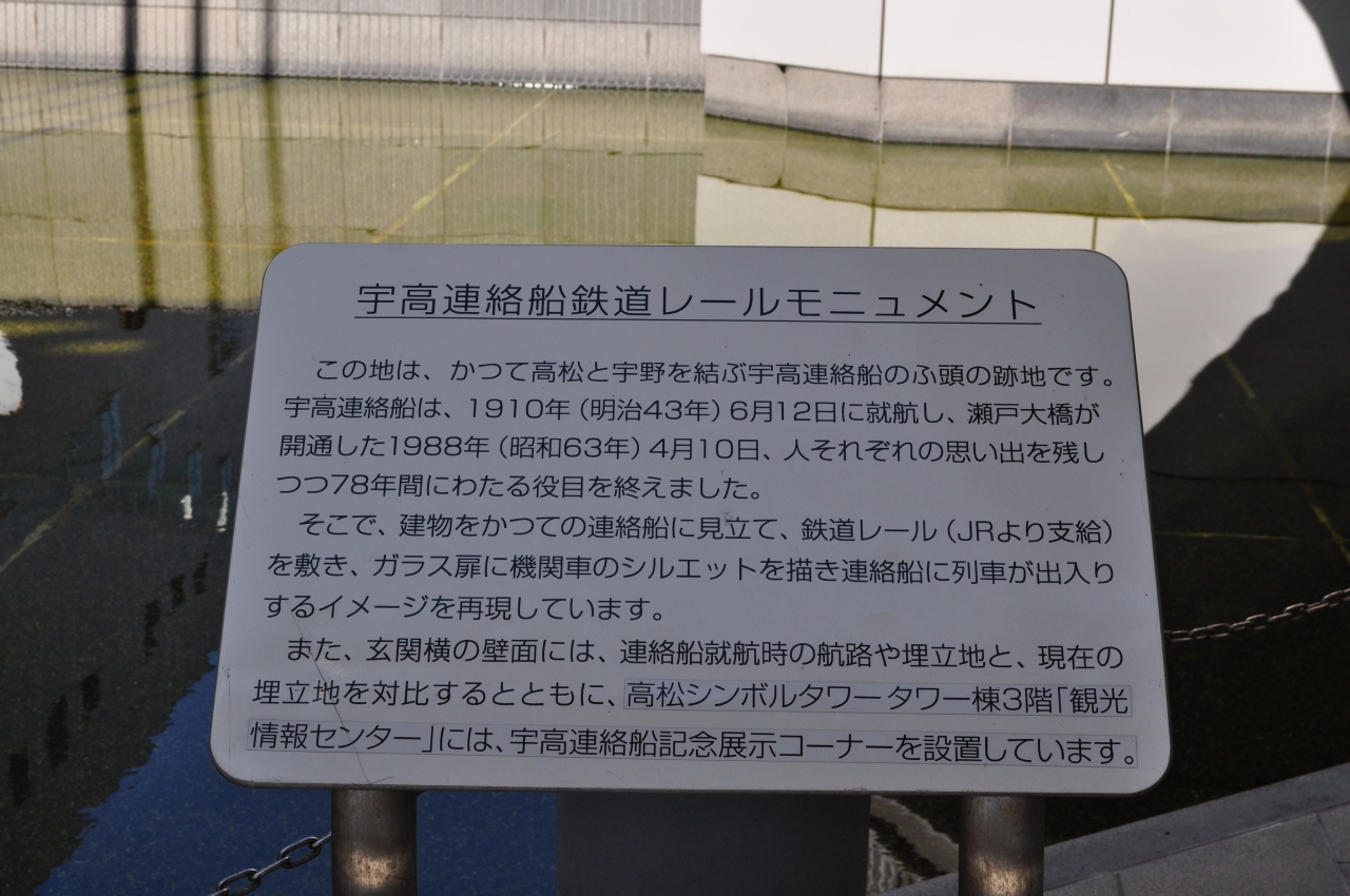 2020年10月に四国旅行で高松を訪問した際に立ち寄りました。高松港のJR ホテルクレメント高松のすぐ北側に「高松港旅客ターミナルビル」がありますが、その1F部分に鉄道のレールが敷かれています。これは知らないと見過ごしてしまいそなスポットですね。かつて瀬戸大橋が開通するまでは四国と本州との輸送は船が主な手段であり、貨車などを直接船に乗せるための鉄道レールが敷かれており、その遺産を残すために整備されているんですね。ちょっぴり切なくなる面白い場所です。
