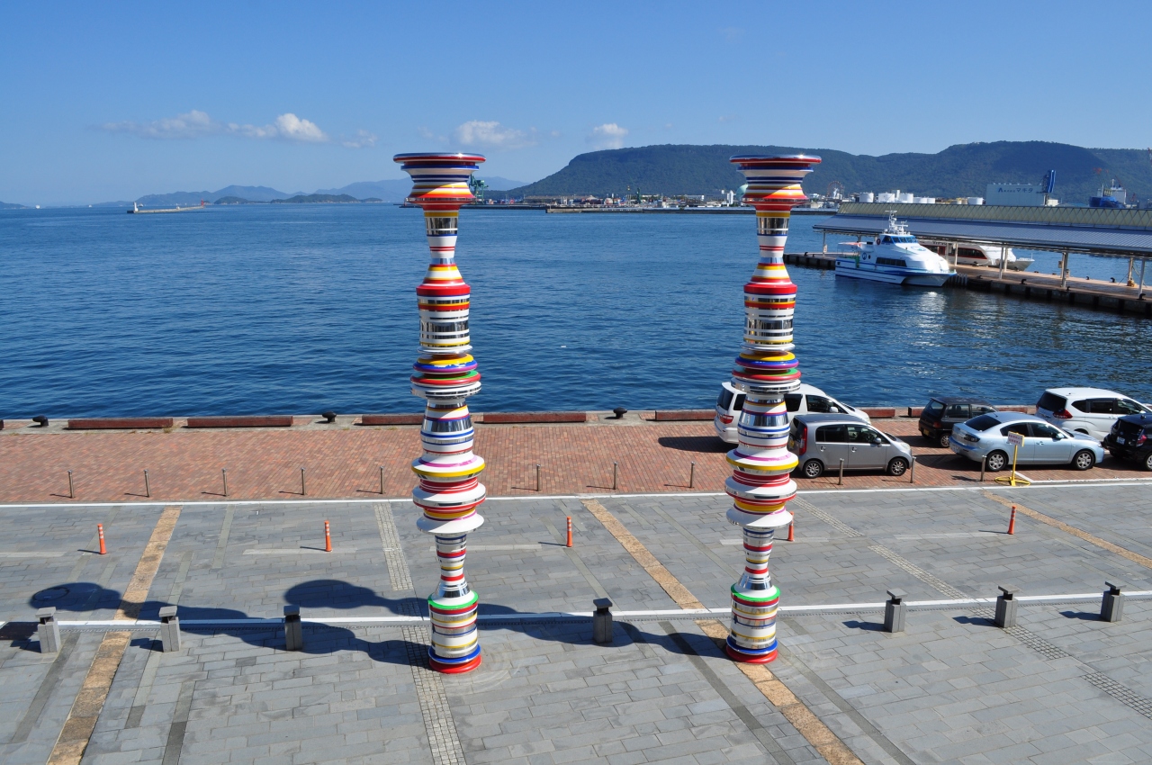 2020年10月に四国旅行で高松を訪問した際に見かけました。高松港旅客ターミナルビルの近くの岸壁に立っている2本のアート作品です。大巻伸嗣さんという芸術家の作品との事ですが、非常にカラフルで印象に残るものでした。高松は芸術が盛んな町であり、瀬戸内国際芸術祭の舞台でもあることからこういった芸術作品が所々にあります。なかなか芸術作品を理解するのは難しいのですが、街に彩を与えてくれる貴重な物として拝見させていただきました。