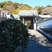 住宅街の中に歴史ある山門と境内への参道が続く。本堂に向かって木々が植栽された落ち着いた雰囲気のある寺院だった。