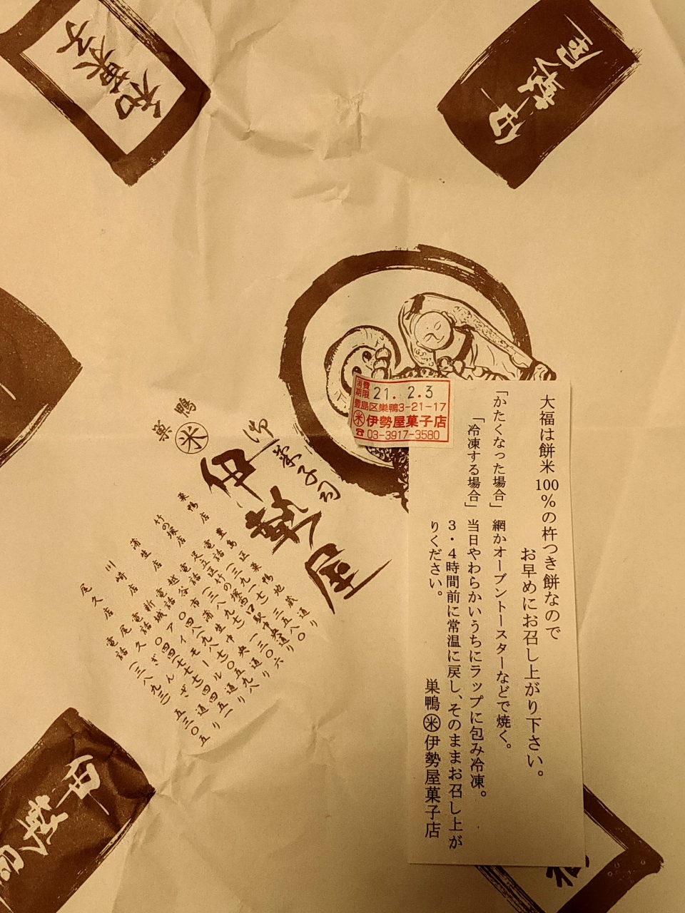毎回巣鴨に行ったら、今回は伊勢屋さんで食事をしようと思いながら、毎回塩大福を買うだけです。長いうちに習慣になっているみたいです。