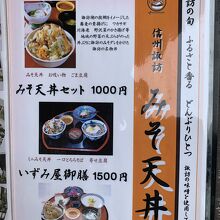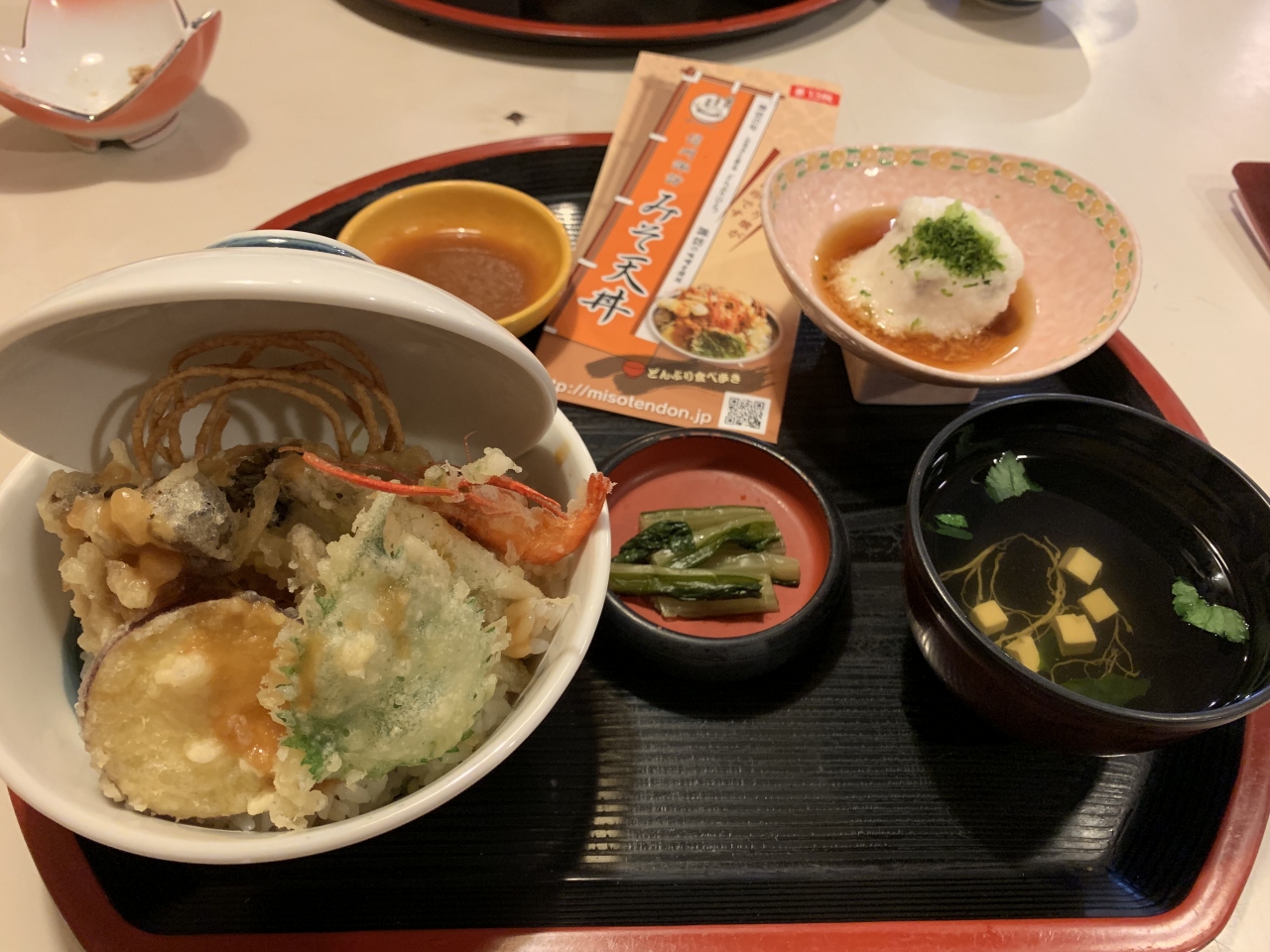 上諏訪駅から徒歩すぐのところにある、信州諏訪のご当地グルメのみそ天丼で知られるお店です。「信州諏訪みそ天丼セット」(1,000円)をチョイス。みそ天丼は、天つゆではなくみそダレがかかっています。初みそ天丼、食べてみての印象は…甘めの味噌に天ぷらは小ぶりなネタで印象が残らず...この1食ではなんとも判断しにくいですね。この店について言うと、もう少しボリューム感は欲しい気がしました。