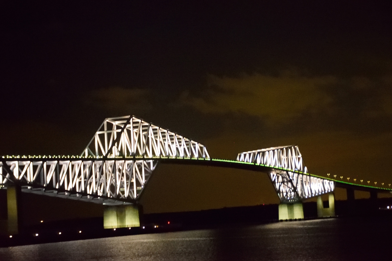 東京のお台場と新木場を結ぶ道路に架けられた橋。東京湾の上を走ります。はしご形をしためずらしい形の橋で、夜にはライトアップされます。橋のたもとには公園があり、公園が一番橋を綺麗にみることができる場所です。遠く離れた羽田空港のターミナルビルからも見ることができます。
