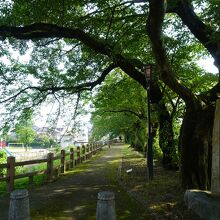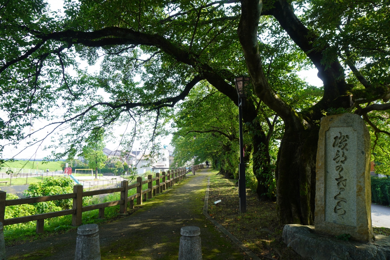 松川磯部堤防遊歩道は、磯部の一本榎から神通川に出たところ。神通川の東岸の松川沿いに約1kmにわたって続く堤防の道。松川水門から川沿いにはソメイヨシノの古木の並木。市街中心部からは少し外れているので、ちょっと荒れた感じもなくはないですが、まあまあの風情かなと思います。