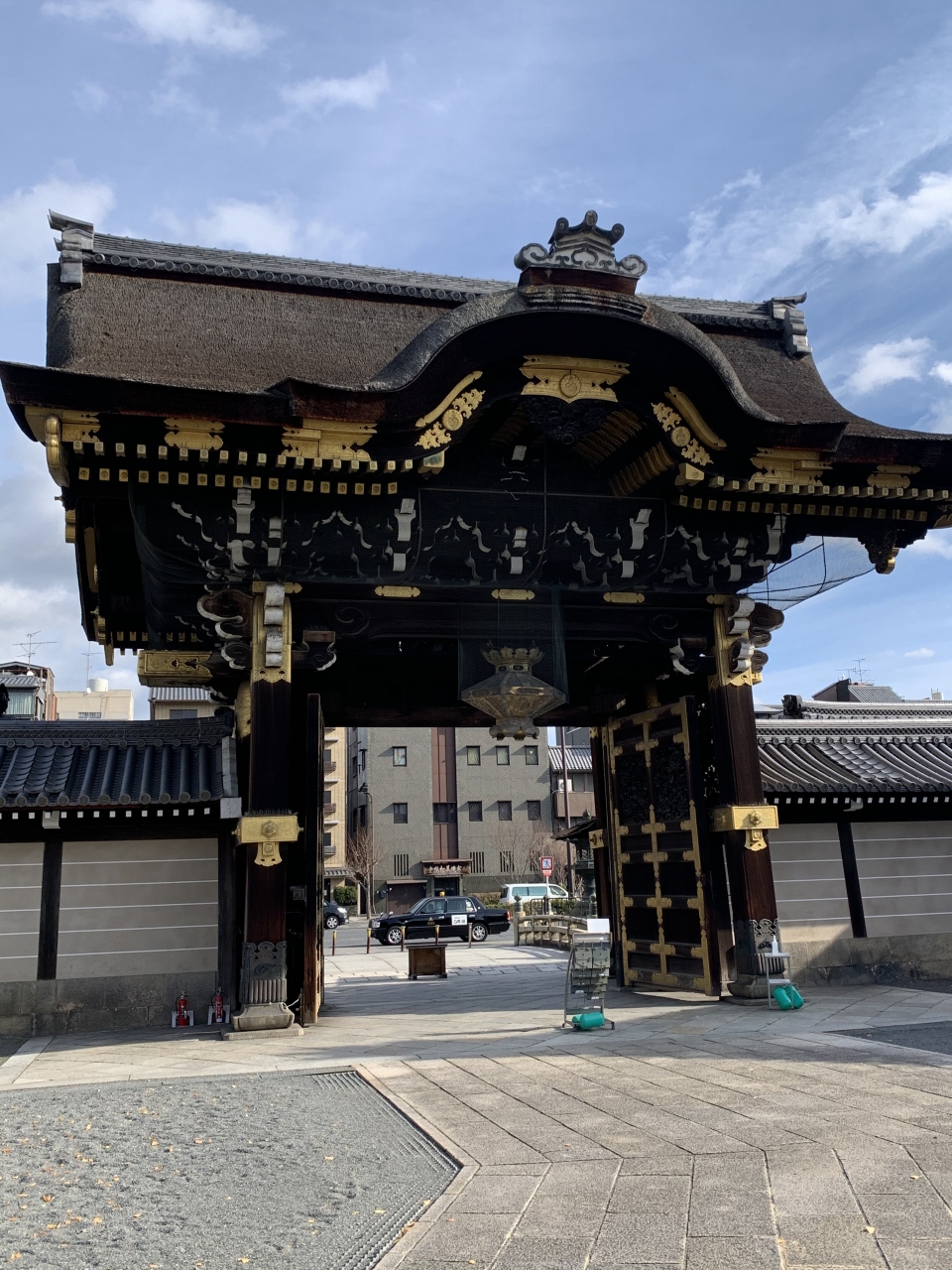 京都駅から「堀川通り」を歩いてくると まずは 西本願寺「御影堂門」があり、