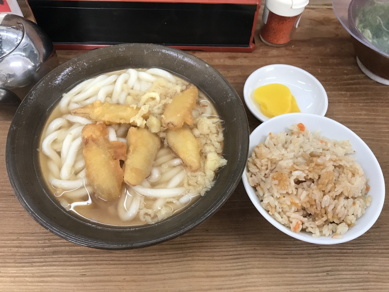 福岡で有名なうどん店。博多南駅から徒歩15分ほど、西鉄バス天神山バス停横。