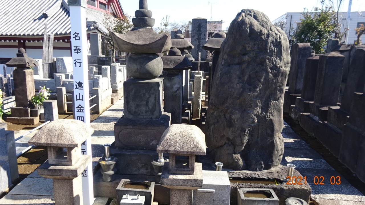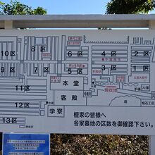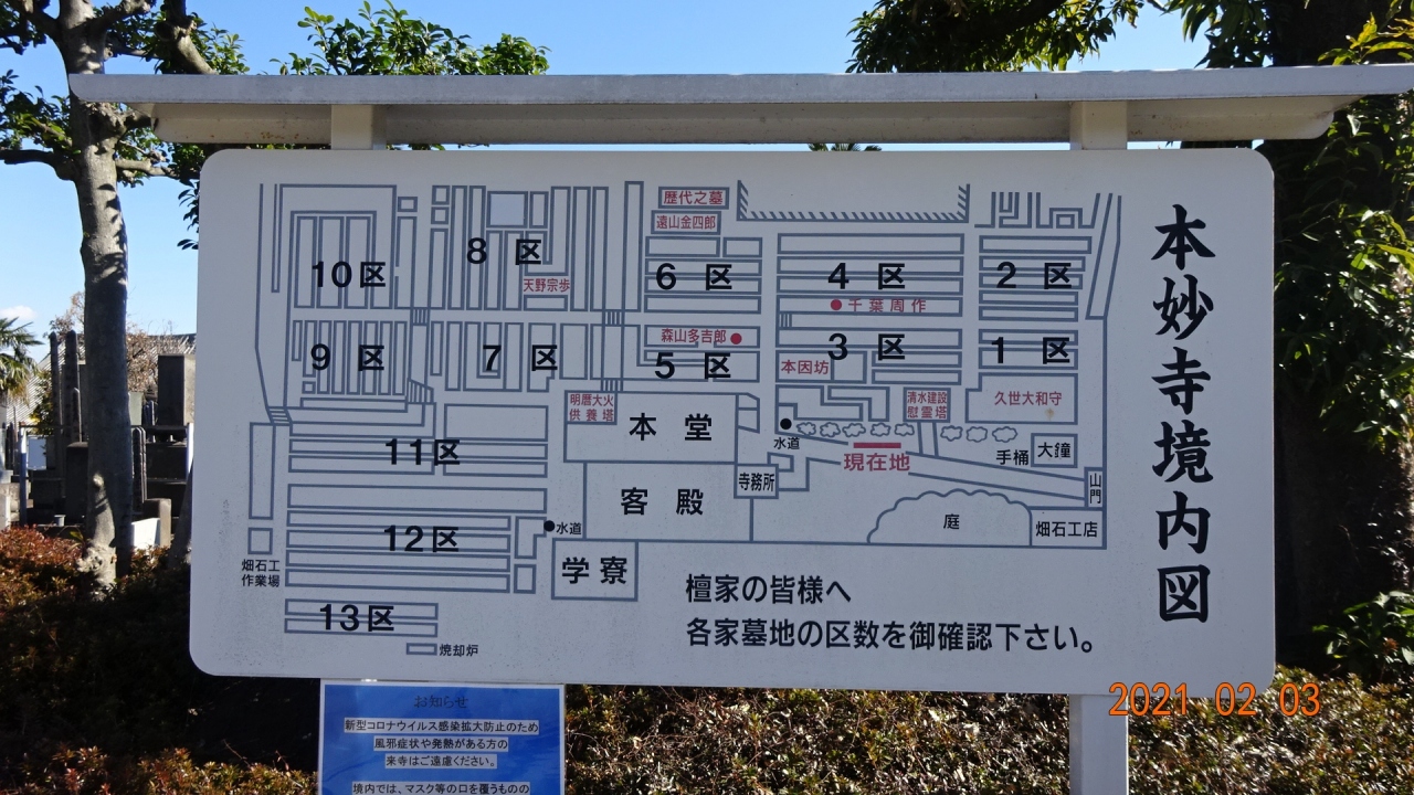 本妙寺の山門をくぐると本堂がありますがね本堂の手前に墓所全体の案内板があり、そこに遠山景元の墓も記載されています。