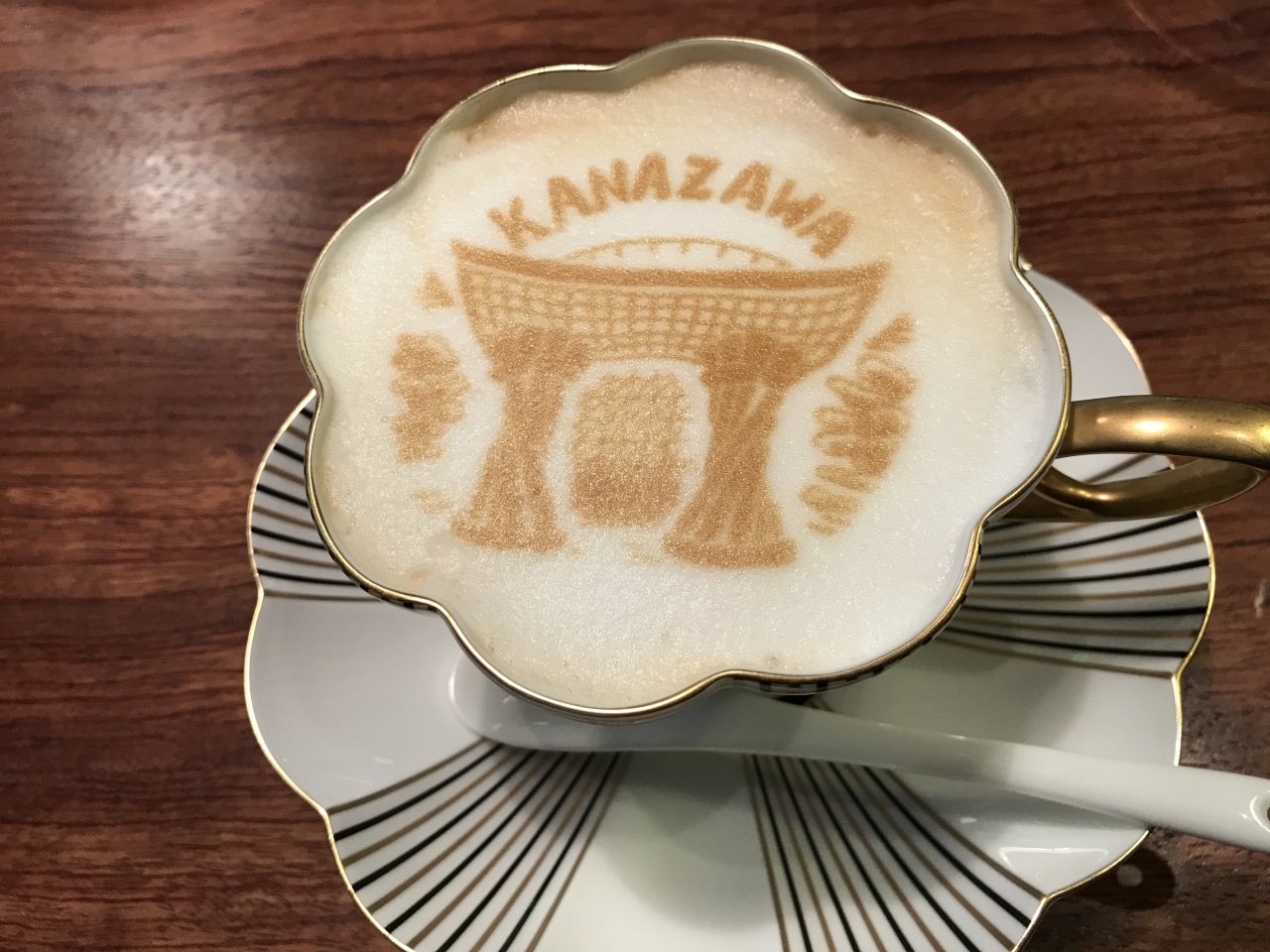 ひがし茶屋街にある「白磁」は陶磁器の売り場とお店の奥にカウンター6席だけのカフェがあります。カウンター席の正面の内庭の緑がとても良い雰囲気で落ち着けるので再訪。金沢の名所のカフェラテアートは3種類から好きな絵柄を選んで楽しめます。