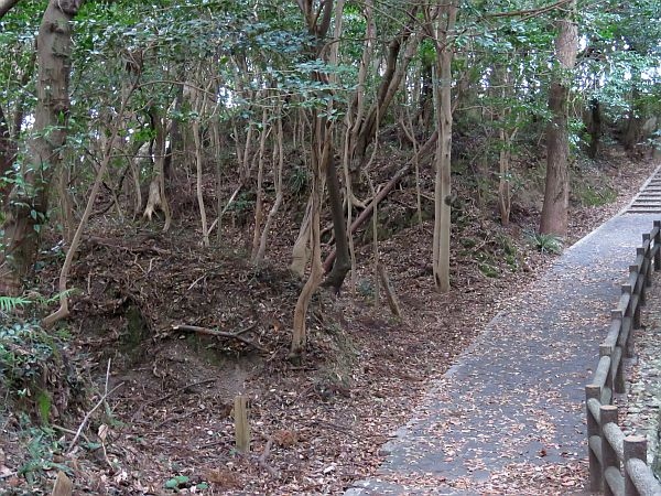 桂浜の背後にある山城です。短期間とはいえ四国の覇者である長宗我部氏の本拠地となった城ですが、なかなかひどい有様でした。本丸跡は、国民宿舎桂浜荘や県立の坂本龍馬記念館、廃止されたレジャー施設の建設で大規模に破壊されています。数年前の坂本龍馬記念館の建替えと増築時に発掘調査さえされていません。金にならない長宗我部よりも金になる龍馬を選んだのでしょうね。あまり原形をとどめていない天守台と天守台前に移築された石垣と西側にある三重堀切くらいしか目ぼしい遺構はありません。ちなみに、西側の郭群へは遊歩道経由で三ノ壇まで行くことができますが、その先は柵では入れないようになっていました。わずかに残された郭跡を整備して欲しいなと思いました。