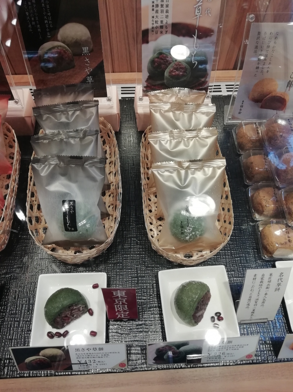 東京駅限定、黒さや草餅は¥432。