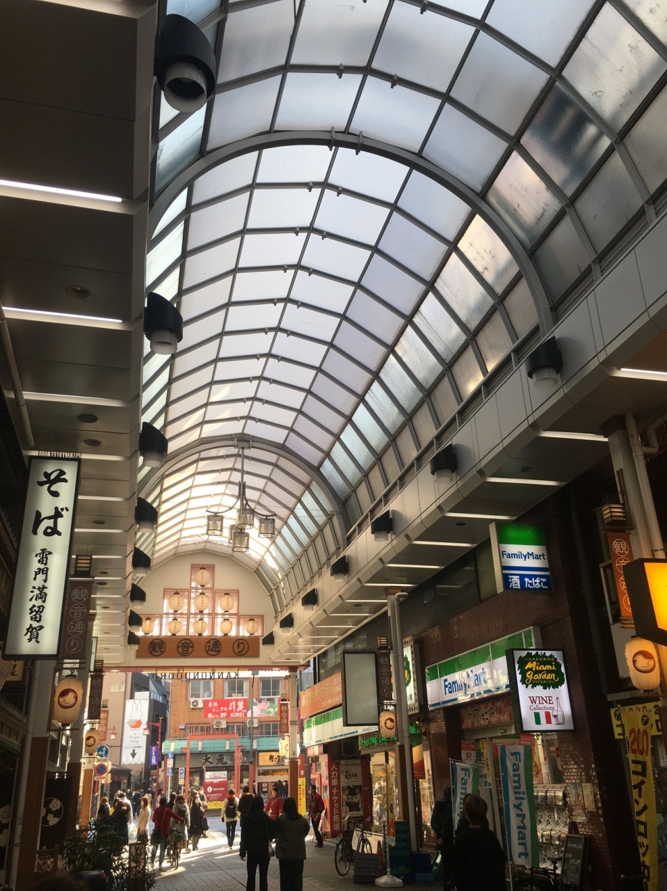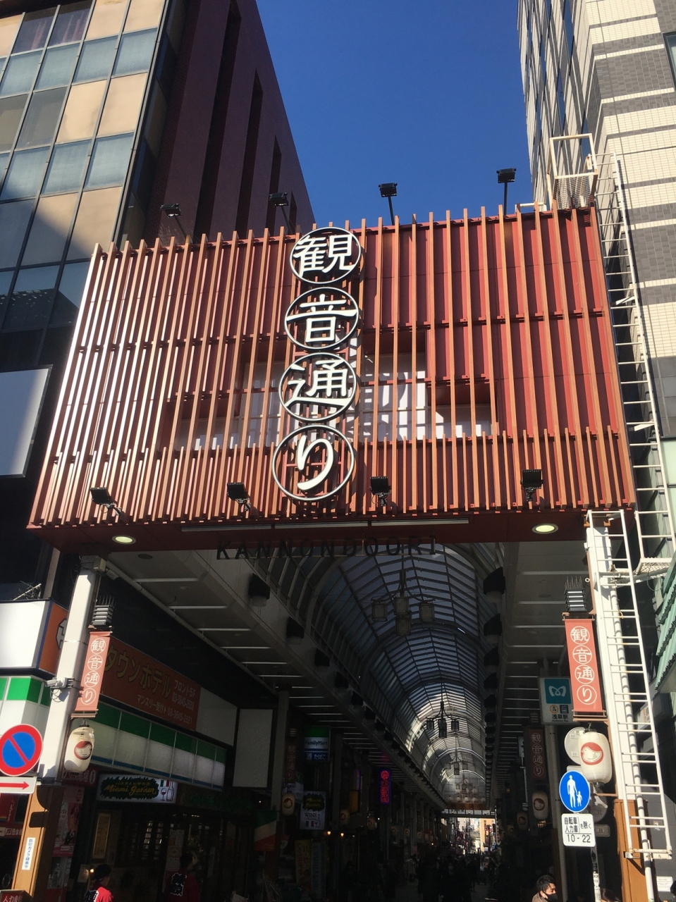 浅草雷門から徒歩1分ぐらいの場所にあり地下鉄銀座線の出入口もあり、ファミリーマートもありました。天井が高くアーケードになっていて、天井からはお洒落な4つの街灯が間隔を置いて設置されていました。人通りが多い商店街でした。