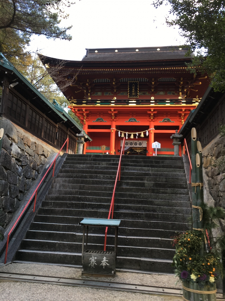 朱塗りの楼門が見事。