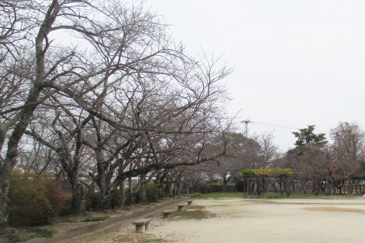 中津城の二ノ丸公園は模擬天守の北東のところにあります。ざっとで見ると幅40m、奥行き100mくらいの広さがあります。ここには桜の木が150本ほどあって、毎年4月上旬には、この公園で「二の丸公園桜まつり」が開催されるとのことですが、次回は開催できるでしょうか。