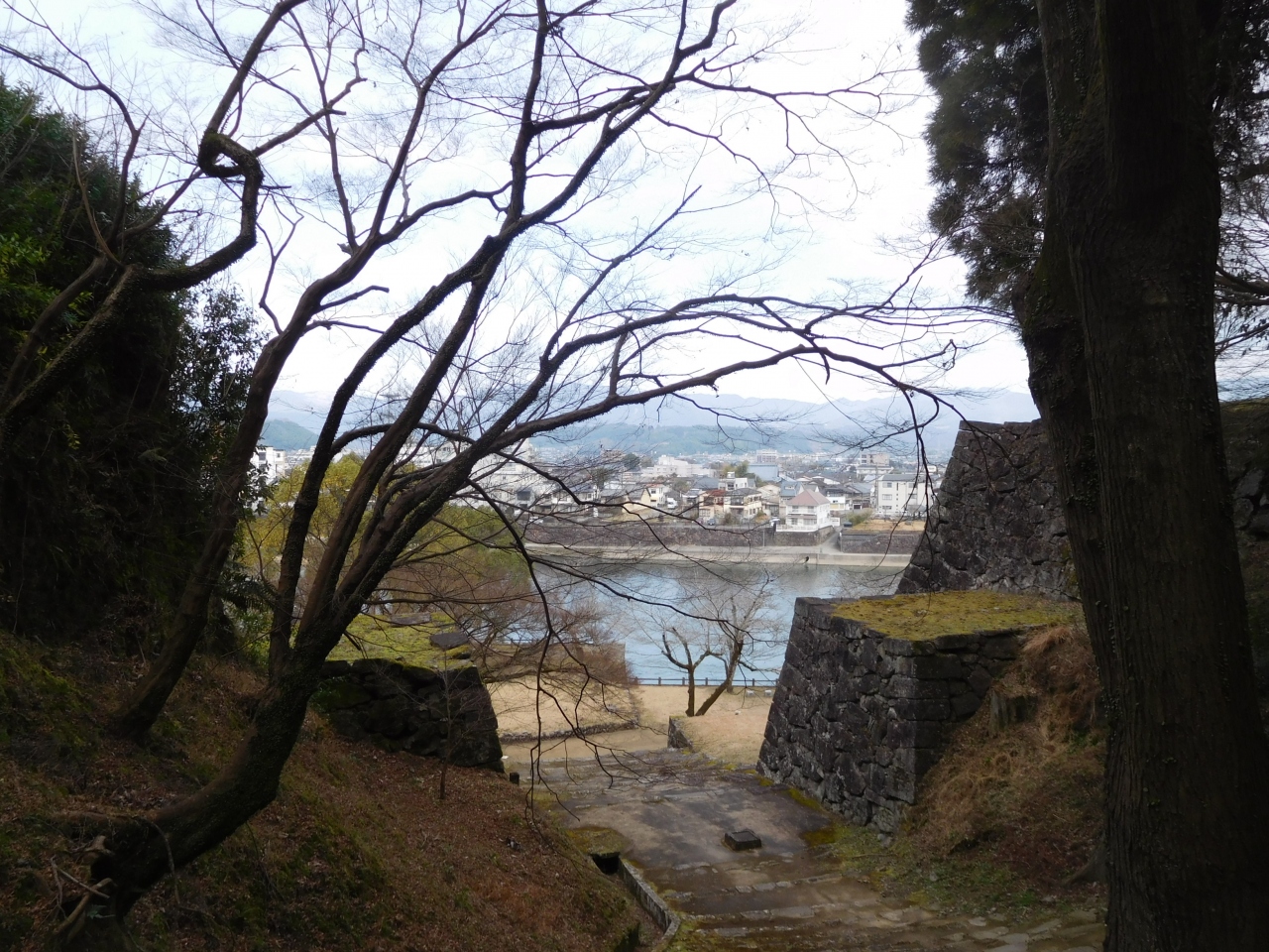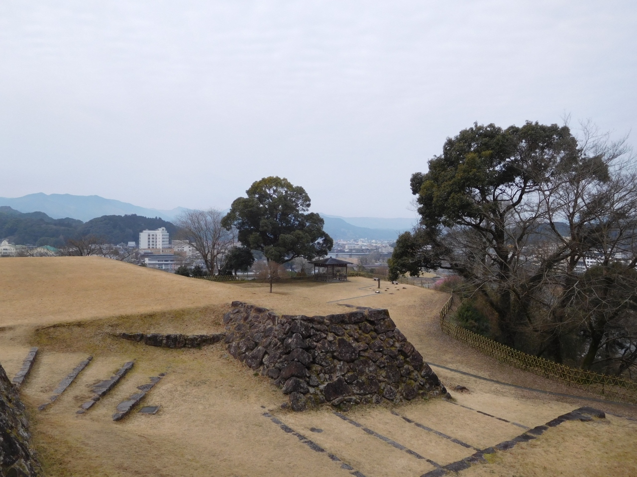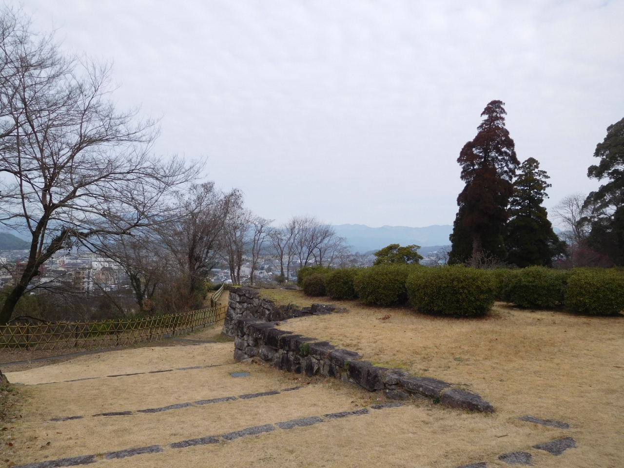 日本百名城の一つ。大きなお城です。まずは石垣が高い。けっこう上ります。