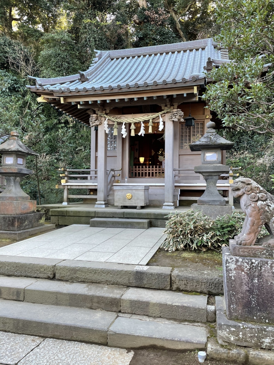 江島神社辺津宮の境内にひっそりとありました。京都の八坂神社と同様に、祇園精舎の守護神.