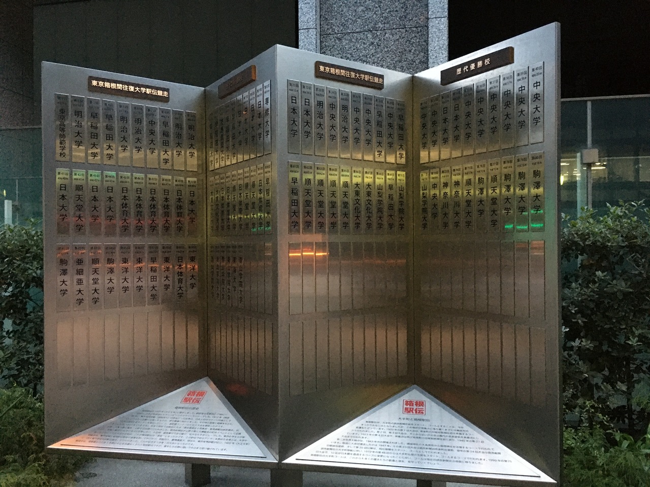皇居ランのついでに行ってみました。箱根駅伝は、毎年見ているので、この像と歴代優勝校のパネルは見たいと思ってました。
