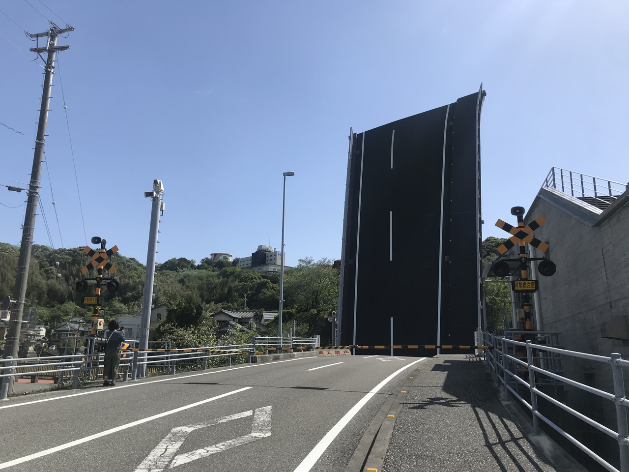 時間がくるとサイレンがなって、踏切が降りてきて、可動橋が上がります。