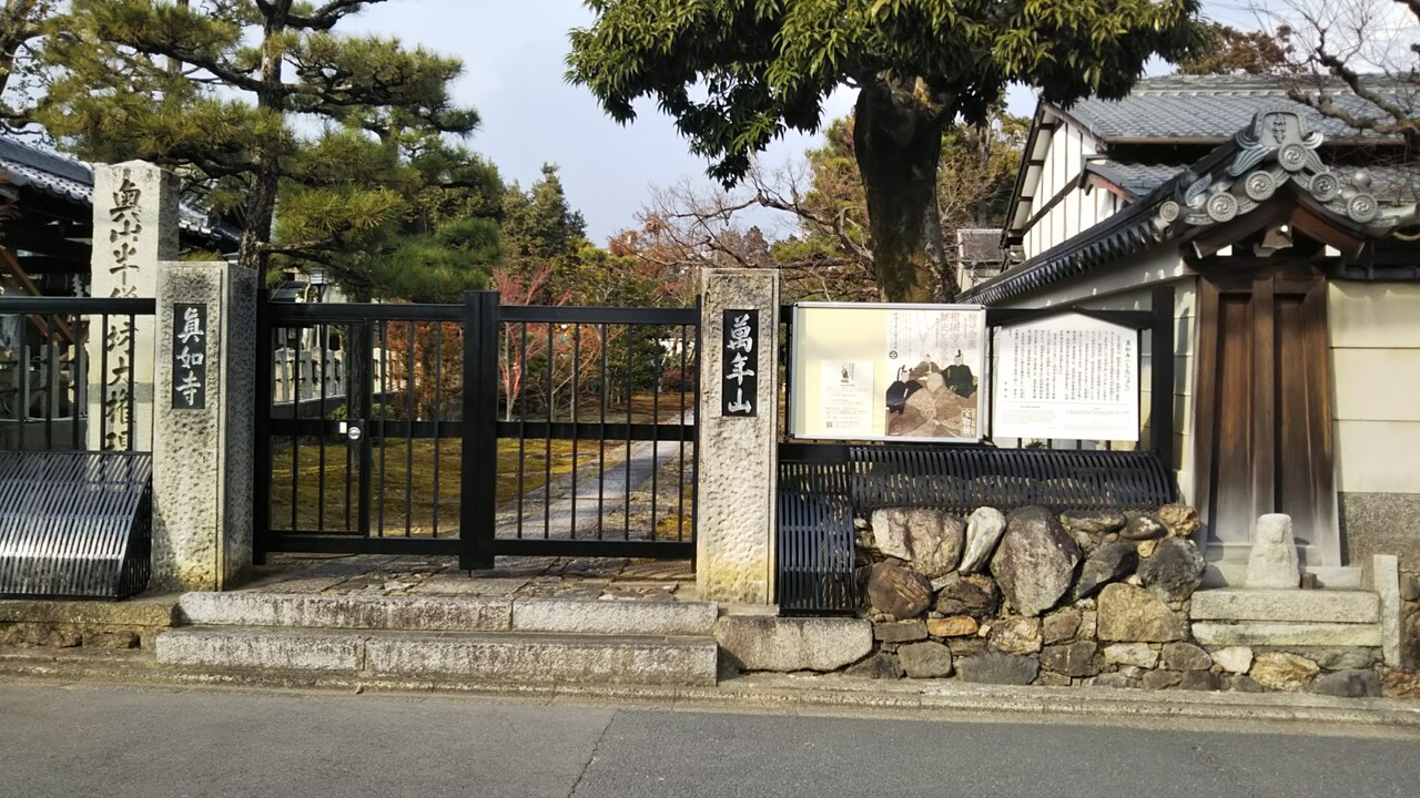 北野白梅町から馬代通り行って北に進んだらバス停見えてくるし、その手前の道を西に進んだらあった。わりと大きいしすぐわかる。ただ門閉まってから中は見えなかった。駒札だけを読む。中には仙洞御所から寄進された宝冠釈迦如来像や襖絵の西湖図、四季花さ図がある。