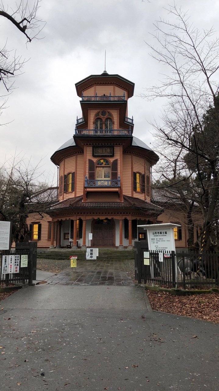 霞城公園内、山形県立博物館の南側にあります。円形の形が特徴的で、国指定重要文化財になっています。2Fまでの内部に入館することが可能で、入館無料です。昔は、医学校・市立病院として使われていたこともあり、昔の館内には手術道具などが展示されています。