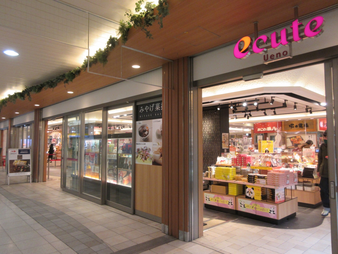 JR上野駅構内3階に10年ほど前に新しく造られた商業施設です。公園口通路と大連絡橋通路の間にあり、レストランやカフェ、ベーカリー、スイーツ店、弁当・惣菜店、衣料品店、ドラッグストアなど60店舗ほどが入っています。明るく清潔感が感じられる施設で、同じ商業施設・アトレに比べ店の数も多く、中央改札付近に比べ人通りも少なく、ゆっくり買い物をすることができます。電車の待ち時間や友人との待ち合わせまでの空いた時間、自宅で食べる弁当やお酒のおつまみの購入などに利用しやすい店が多く、使い勝手が良い商業施設だと思います。