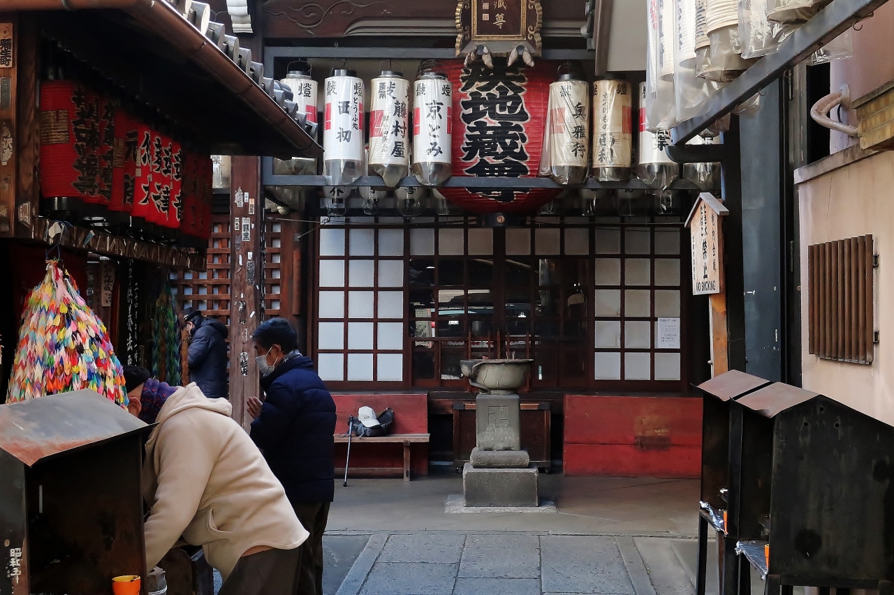 日本人観光客もインバウンド観光客も足しげく行き交う祇園商店街。四条通に沿ったこの商店街の中にあるのが、仲源寺だ。お寺とはまったく無縁に映る観光客をかき分けてお寺に入るのは少し気おくれしてしまう。もともとは普通のお地蔵さんだったが、大雨で鴨川が氾濫の危機に瀕した時に祈願すると、雨が止んだ。それから「雨やみ地蔵」と呼ばれるように。それがなまり、いつしか「目やみ地蔵」の名が。京都に数多くある通称寺の一つだ。京都の一等地だけに広くはないが、いかにも善男善女が祈りをささげている。ひたむきな願いをささげている人が多く、観光的な気分だと少しいたたまれないほどだ。