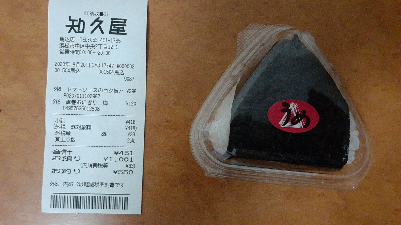 2020年8月20日に訪れ、当日は120円する「おにぎり(梅干し)」を購入しました。