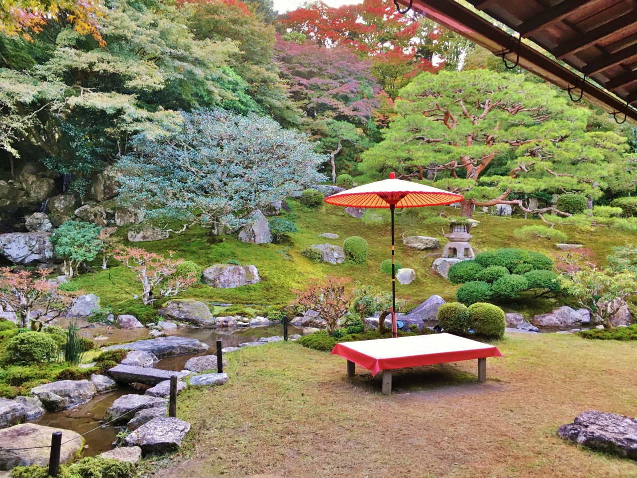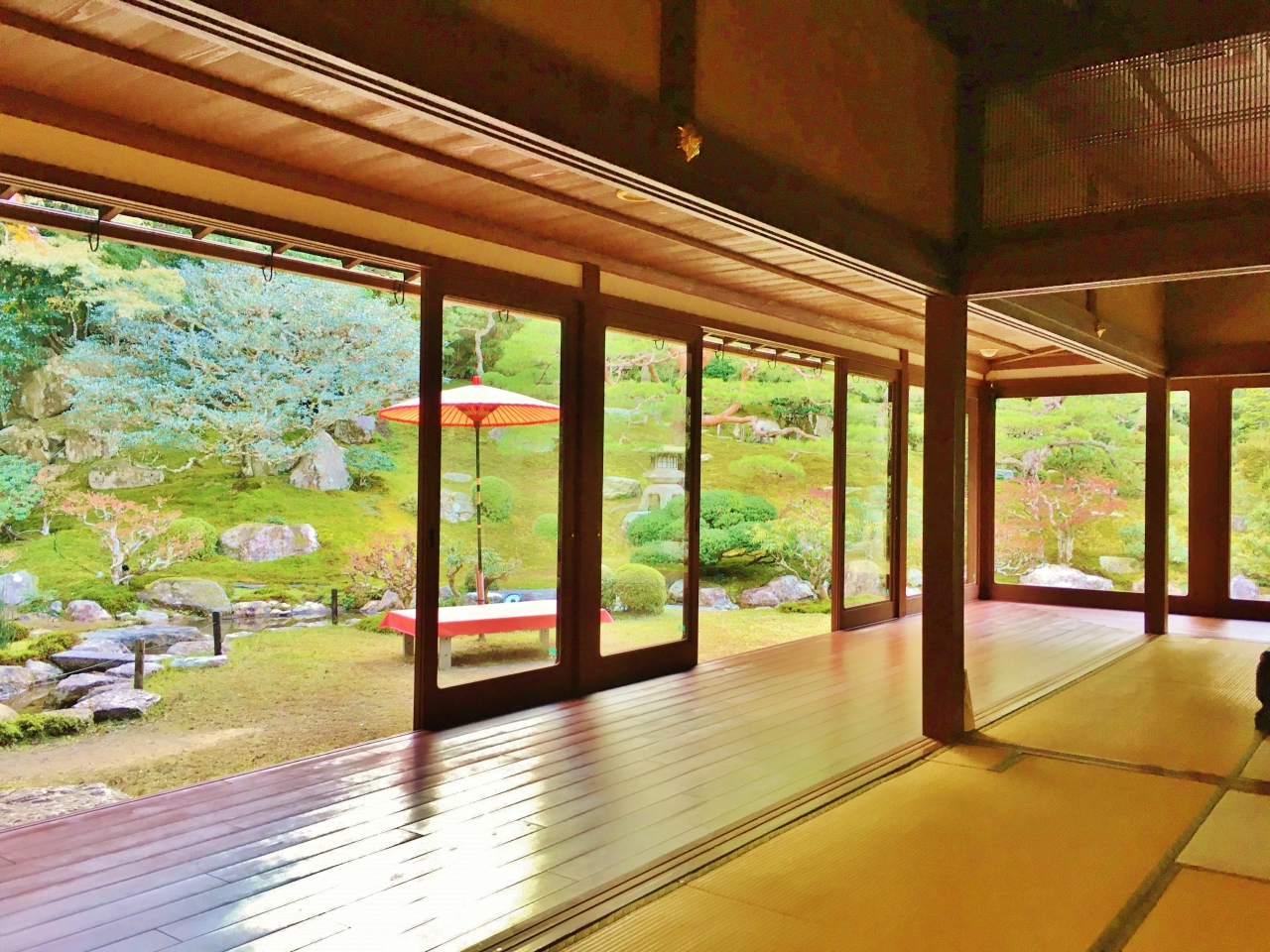 比叡山で修業を積んだ僧侶が隠居後に生活を営んだ寺院、里坊のひとつです。一番の見所は約3300㎡もある回遊式庭園で、国の名勝に指定されています。日吉大社の後に訪れました。主屋からは四季折々の色彩豊かな庭園を鑑賞することができ、建物内から鑑賞した後、庭園内を一周しました。夕方で他に訪れる人もおらず、ゆっくりと美しい庭園を散策することができました。