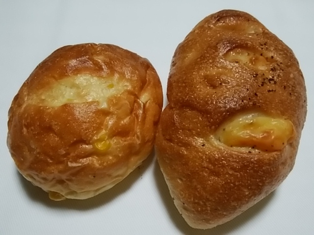 「胡椒とベーコンとチーズのパン」324円(8%税込)と「コーンパン」77円(8%税込)を購入です。
