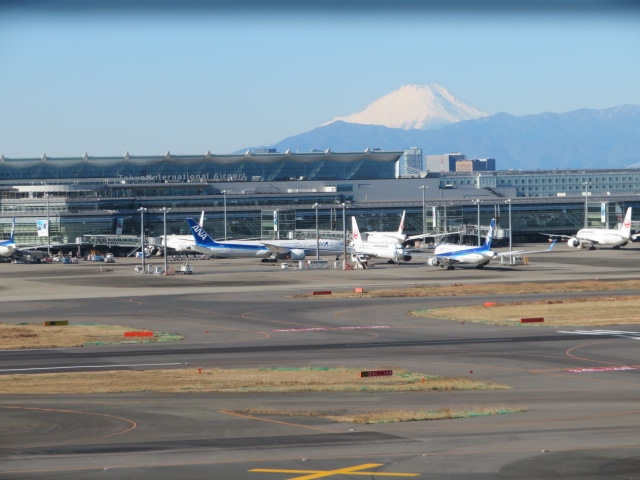 富士山が見えるということで、下のドトールでコーヒーを買って行きました。霞んで見える程度かと思ってましたが、結構ドアップです。天気のいい日だったので素晴らしい景色でした。飛行機を見る展望デッキですが、ここは富士山を見る場所ですね。