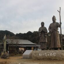 現在は公園のように整備されて頼朝と政子の銅像、石碑、休憩所などがあります。