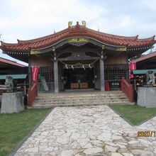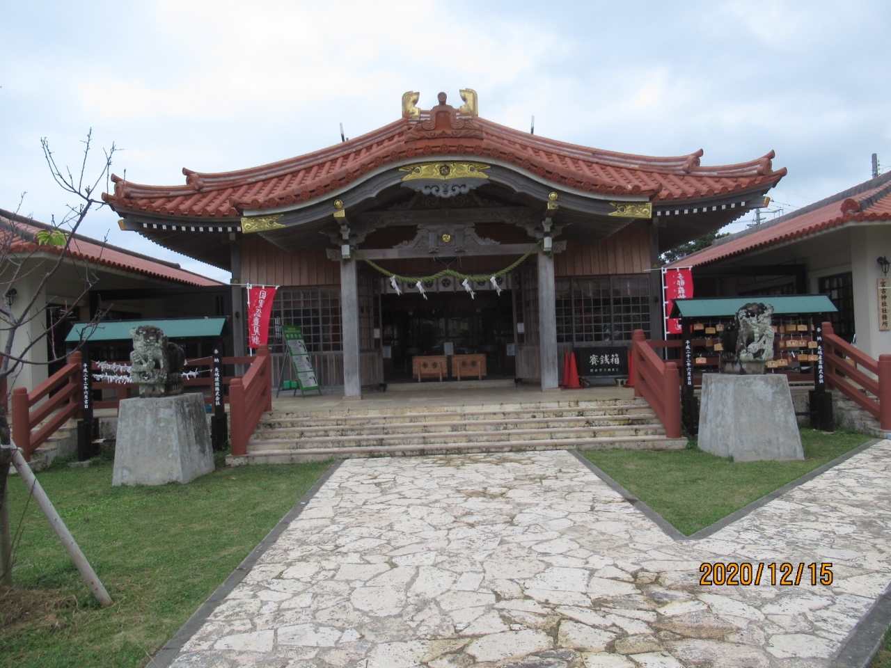 鳥居は石で出来ていて日本風ですが、社殿は沖縄風の雰囲気が出ています。