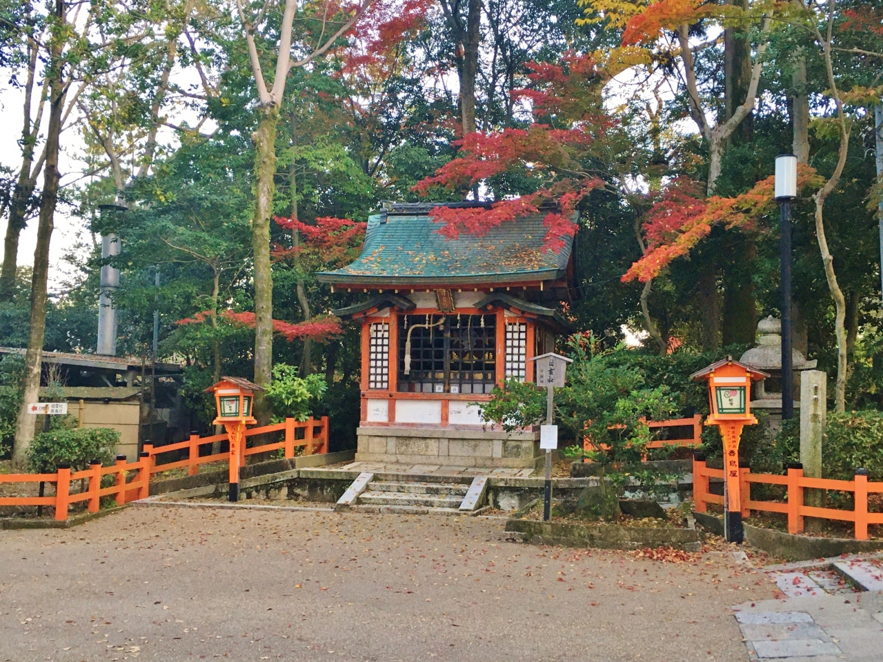 八坂神社の末社の一つで本殿の北東、美御前社を過ぎて進むとあります。ご祭神は大山咋神と大物主神です。北東の方角は京都の鬼門にあたるため方位除けの神様として知られています。日吉社の鳥居前には八坂神社残される伝説“祇園七不思議”の夜泣き石があり、この石を拝むと赤ちゃんの夜泣きやカンの虫封じにご利益があるそうです。