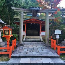 八坂神社の境内には数多くの摂社、末社があり、太田社は末社の一つです。ご祭神は猿田彦神、天鈿女命の夫婦神を祀っています。猿田彦神は天孫降臨に際して道案内をした導きの神、天鈿女命は天照大神の天岩戸隠れの際に岩戸の前で神楽を舞った芸能の女神で、天孫降臨にお供して猿田彦神と導きを行いました。美御前社や大国主社と比べて参拝者が少ないこともあり、いつもひっそりとしています。