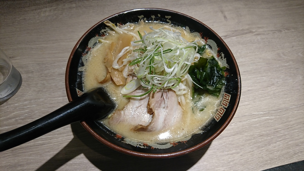 池袋駅東口からすぐの細い路地にある北海道ラーメン店です。夕食で札幌味噌らーめんをいただきました。具はチャーシュー、ワカメ、メンマ、ネギで、コシのある縮れ麵と白味噌系スープの一品です。まろやかで味噌の香りと旨味を感じる味噌スープは癖になる味。美味しかったです。