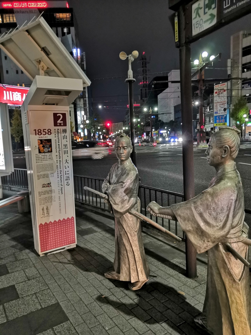 高見馬場の交差点のところにあります。幕府の大老に井伊直弼が就任したころ、将軍継嗣問題をめぐって薩摩藩主島津斉彬などと対立がありました。直接的にはその問題でしょうが、もっと幅広く日本全体の問題を語ったであろうことは容易に想像がつきますね。