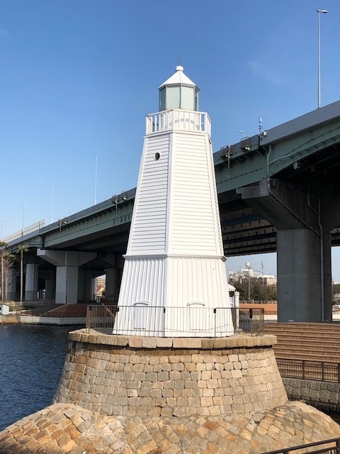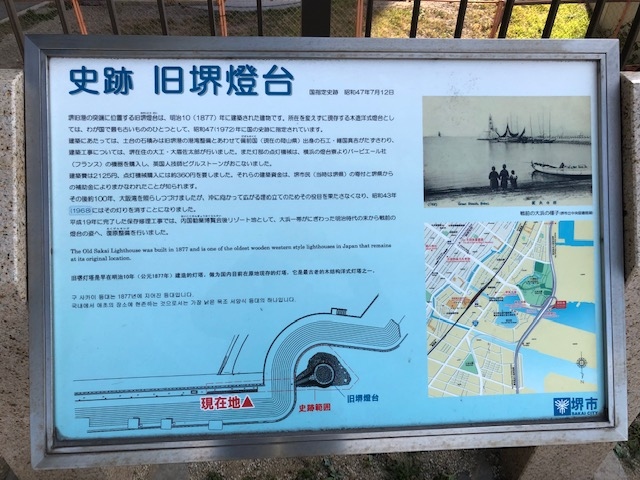 室町時代から安土桃山時代にかけて、天然の良港であった堺港は海外貿易港としても発展しました。その後、一時、衰退しましたが、江戸の商人と堺の人々により築港・修理されたのが現在の堺旧港の原型です。堺旧港南波止場に明治10年築造された高さ11.3mの六角錘形の灯台。埋め立てが進み役割を終えた後、堺のシンボルの一つとして保存、日本最古の木造洋式灯台として国指定史跡になっています。
