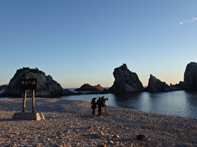 朝日の時間に浄土ヶ浜に行くと、逆光になり白い岩が黒っぽく映るので、日が昇ってから行くのがよいと思います。