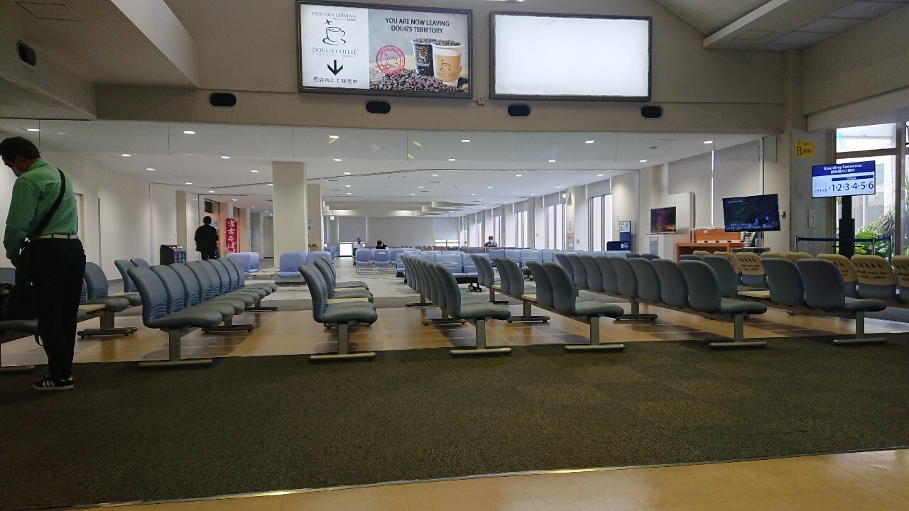 待合室とかんたんなコンビニがある程度の空港施設となっていて、はやく着きすぎると時間を持て余してしまいます。