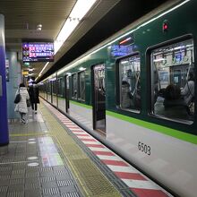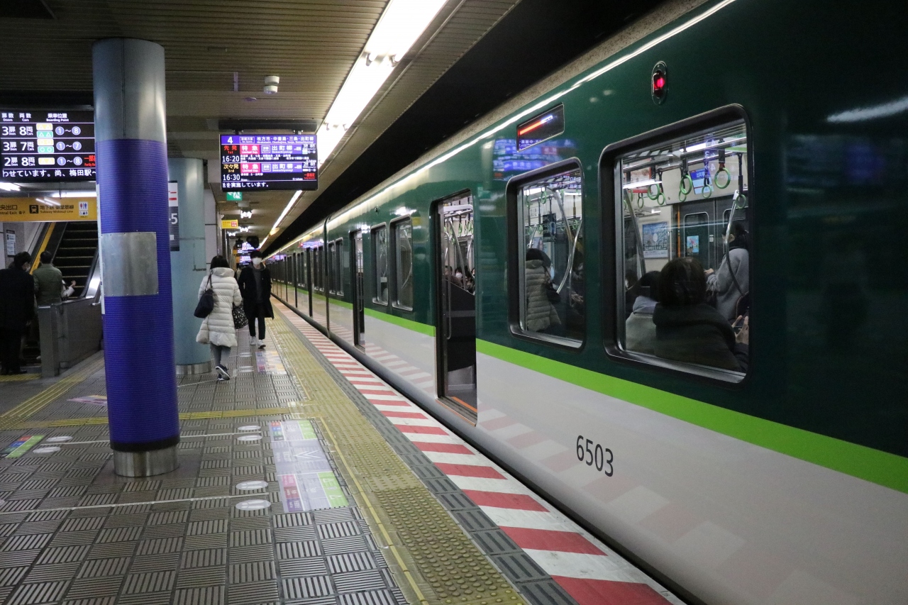 基本は3ドアですが特急の一部列車が2つドアとなっており電光掲示板と足元の乗車位置目標はしっかり確認しておくのが良さげです。京都~大阪だと京阪・JR・阪急と激戦区になっていますが、後者二つはともかく京阪に関して言えば少し離れたところを走っているので意外と需要はあるのかもしれません。2つドアの特急だとラッシュ時はどうしても乗降効率が落ちてしまいますが、車端部の座席を除き進行方向に向かって座るタイプの席なので座れれば快適に移動できるのは利点ですね。