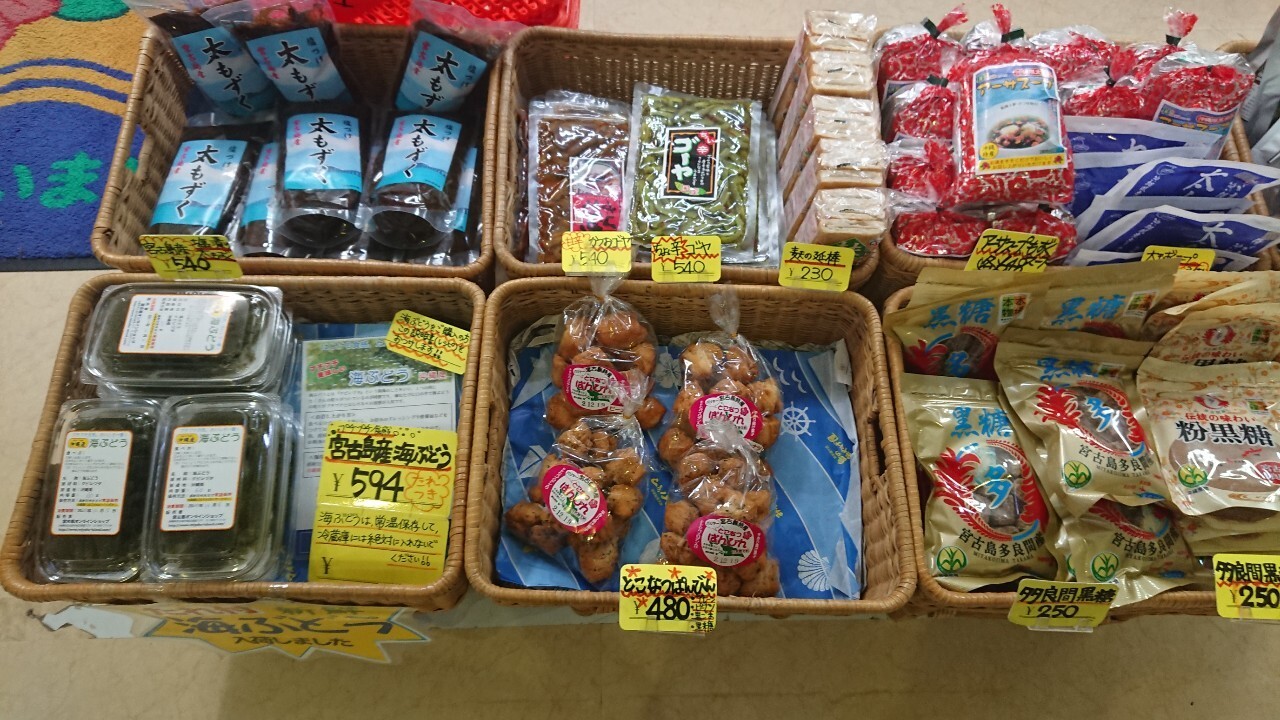 宮古島のものだけでなく、近隣の島例えば多良間島や沖縄本島の特産物を販売しています。