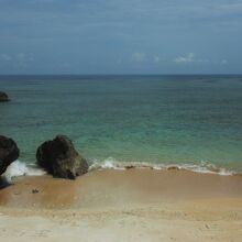 鳩間島を一周できる一周道路。港を出て右手から島を反時計回りで回ると、小さな岩場に囲まれた「島仲浜」、島の北側にある「立原浜」、そしてサラサラの真っ白な砂浜に透明度の高いエメラルドグリーンの海が広がる「屋良浜」などの順番で点在するビーチを見て回ることができる。最後に「屋良浜」でのんびりして港に戻ってくる回り方がお勧め。