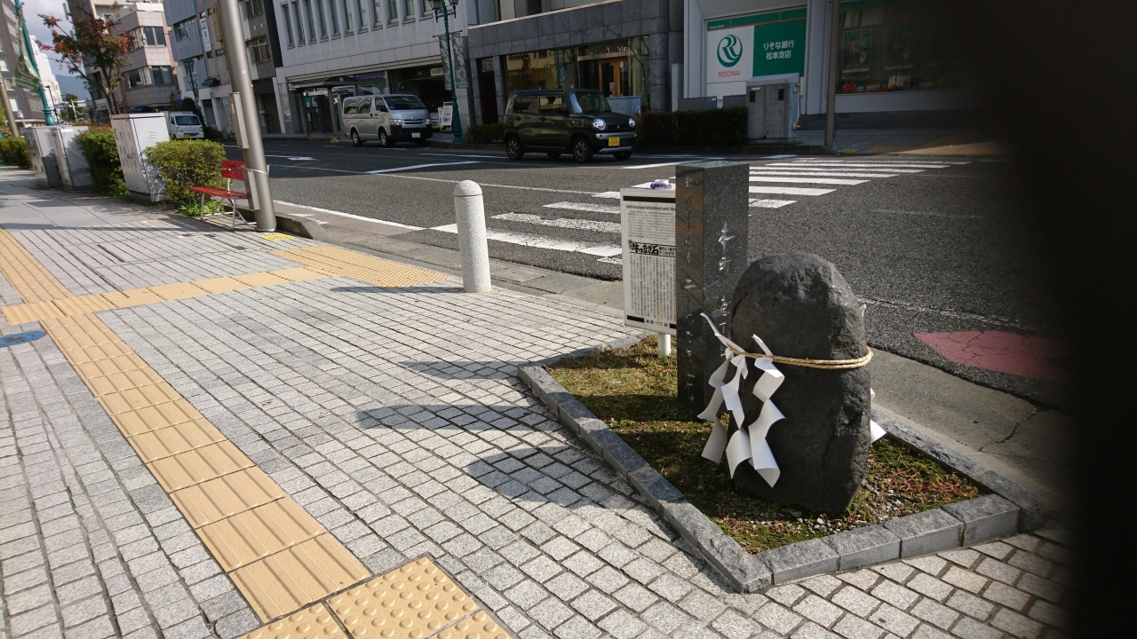 「敵に塩を送る」という上杉謙信の故事を伝える石のようです。実際に牛をつないだのではなく、江戸時代以降毎年1月11日に塩の売り買いが行われる「塩市」が立つ場所がここだったそうです。この「塩市」の起こりが、あの上杉謙信の逸話であるという言い伝えが出来上がったというようです。歴史を調べるきっかけを作る石ですね。