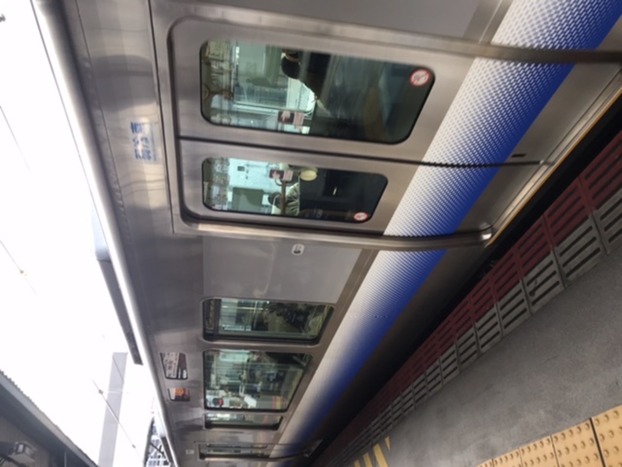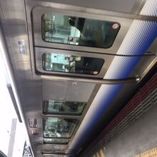 車内は2列+1列の転換クロスシート。大きい荷物があっても通りやすいです。