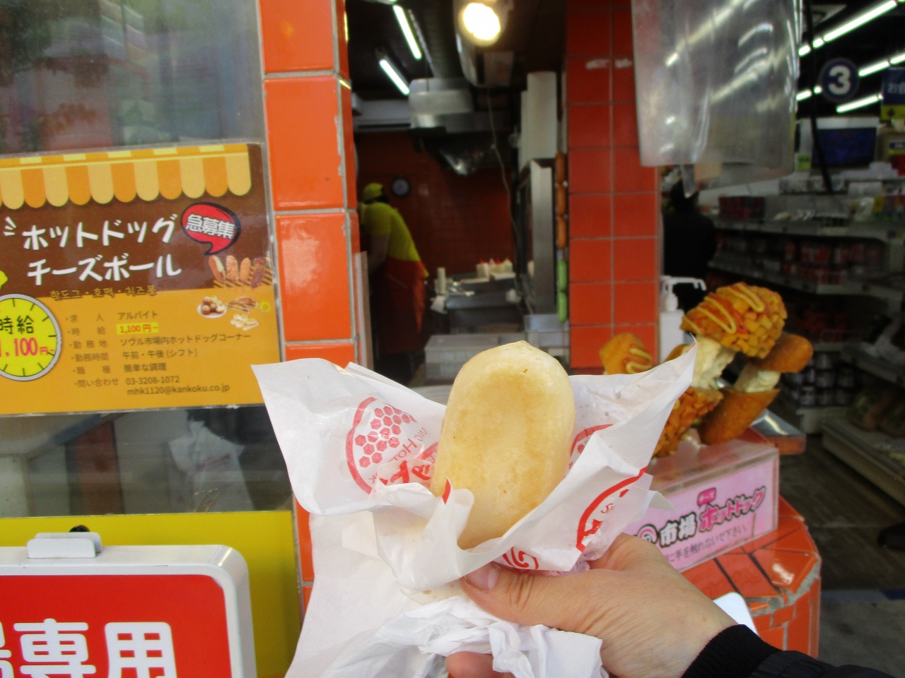 数年ぶりに新大久保にお買い物に行き、韓国食材を買いに、この店に立ち寄りました。買い物ついでに、ちょっと小腹が減ったので、ホットックを頂きました。小さな食券の販売機があって、できるのを待ちましたが、開店したばかりだったので、ちょっと待たされました。