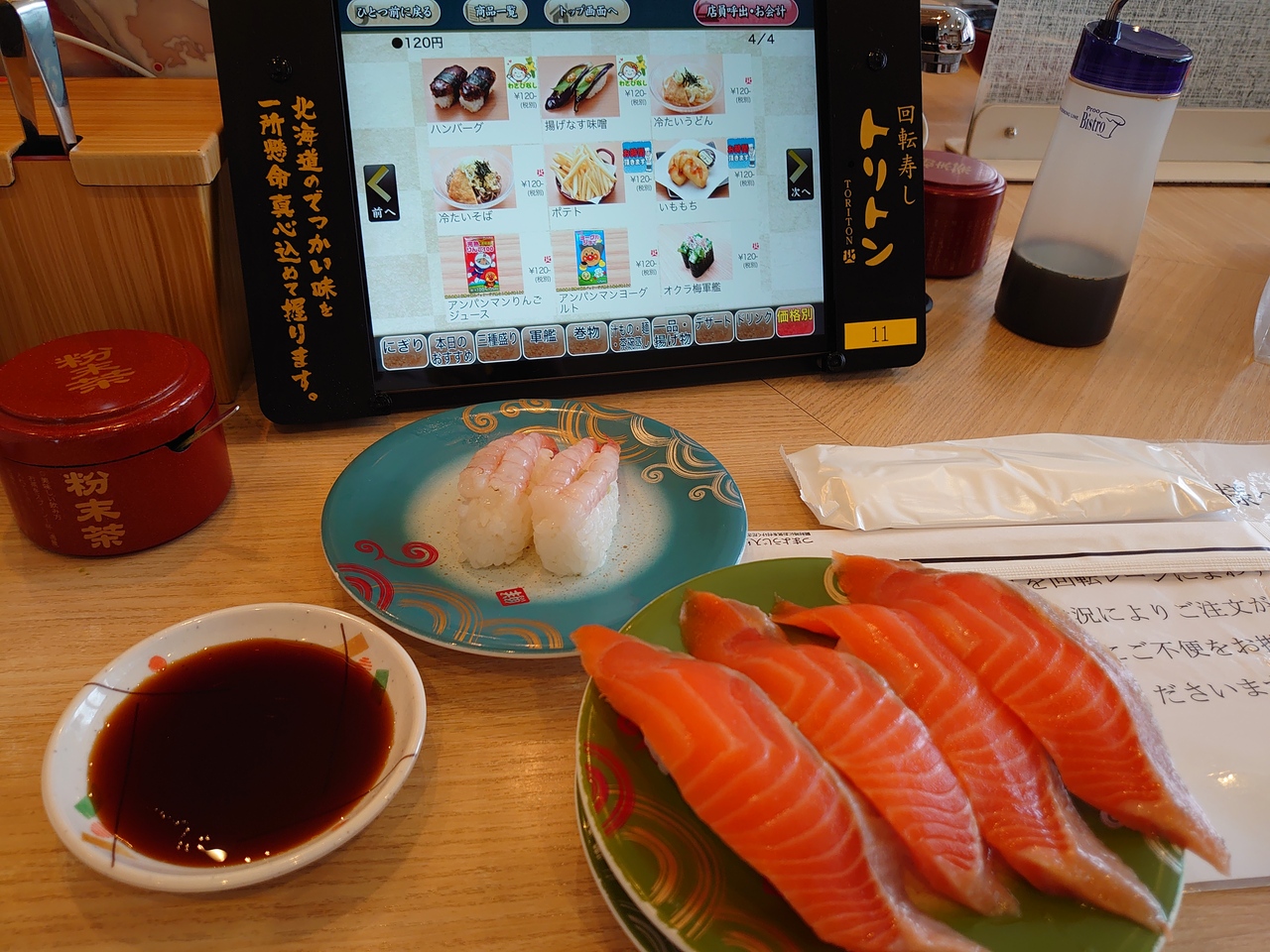 久しぶりに訪れたトリトンですが、新型コロナが治らない中相変わらず霊にお寿司は流れていません。極力会話を避けることを目的としているのか、タッチパネル方式がトリトンでも採用されていました。タッチパネルの画像はとても見やすく操作もしやすいです。