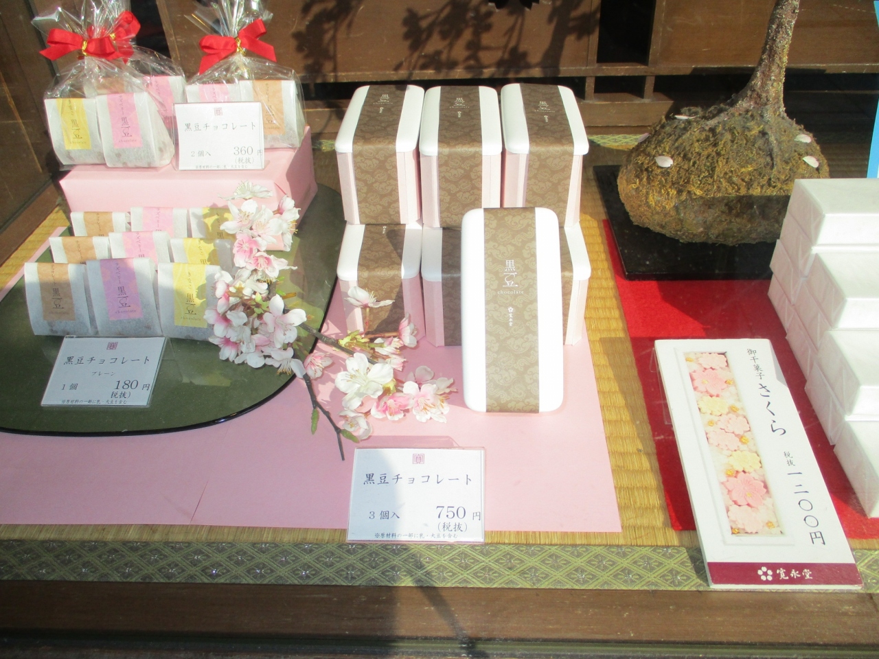 四条通沿い、先斗町にある高級和菓子の老舗店です。今までなんとなく入りづらい・・と思っていましたが、先日通りがかると店頭に買いやすい値段のお楽しみ袋があるのを見つけました。さらにショーウインドウには季節を感じる桜の形の干し菓子なども。お茶うけに