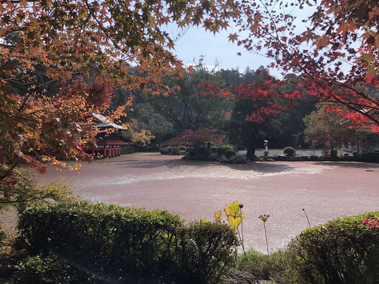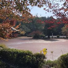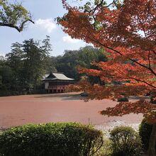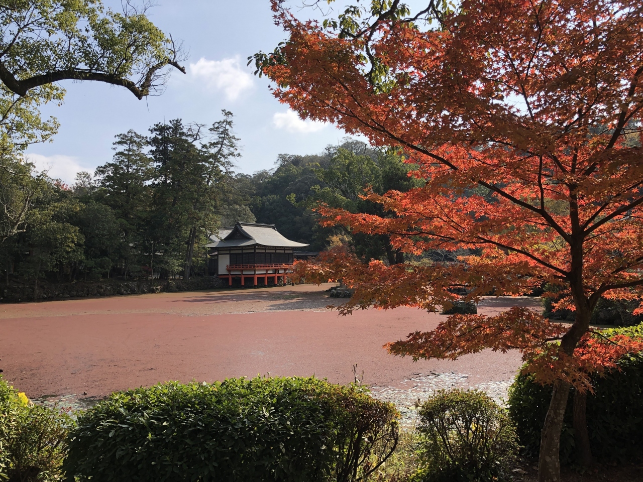 今回は11月下旬に訪問しましたがちょうど紅葉の季節で、菱形池の周囲には赤く色づいた葉をつけている木もところどころにありました。手水舎の近くなどは写真を撮る人などでにぎわっていましたが、境内は広々としているのであまり人混みを気にせずに散策できました。