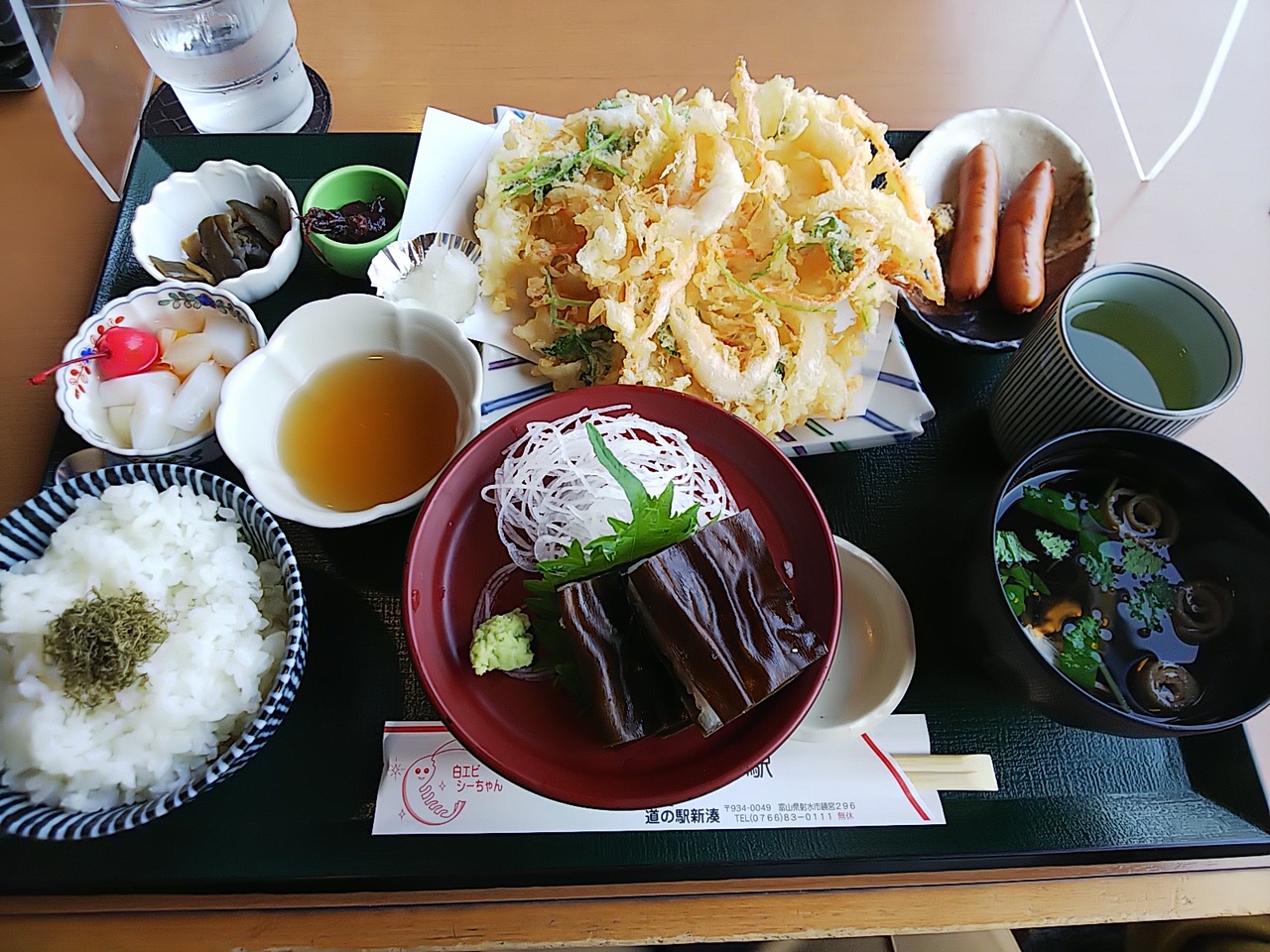 新湊にある道の駅カモンパーク内にあります。白エビやカニを味わえるのでいつもたくさんの人です。日曜で射水市のPAYPAY30%還元(2月中の予定が既に10日で終了)があるということで15組程度並んでおり、約30分以上待ちでした。海鮮丼、白エビなど海の幸が味わえます。